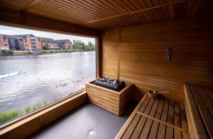 Selve bygget er gjennomtenkt. Panoramavinduet trekker elva inn i rommet og gjør varmen mer enn varme. Sklisikkert gulv, god belysning og universell utforming gjør badstuen enkel å bruke for alle. Kapasiteten er på rundt 10 personer, med garderobe og dusj like ved. Treverket gir en lun akustikk og en dempet, behagelig stemning. Denne kombinasjonen av estetikk og funksjon løfter hele opplevelsen.